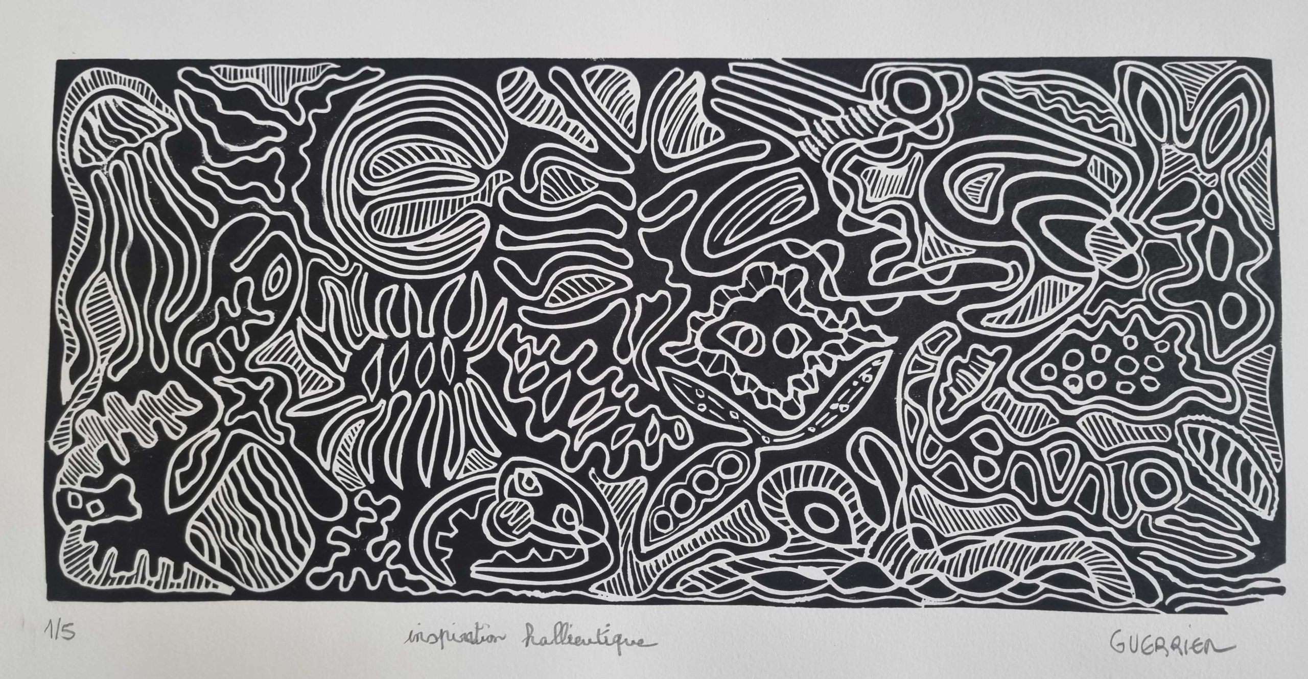 Linogravures 22.50cmx50.2cm sur papier Velin d’Arches 50x65cm 250gr, numérotée sur 5